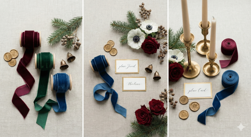 نصيحة: اختاري لونين أساسيين (مثل العنابي والذهبي) مع لون ثالث مكمل (مثل الأخضر الزمردي) لتصنعي لوحة متناسقة.