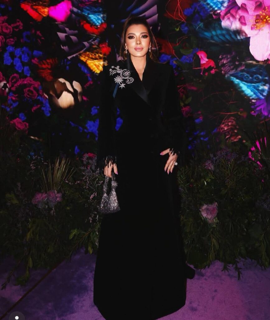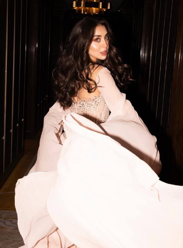 بإطلالة مفعمة بالـ Romanticism، أطلت هيا مرعشلي بفستان بلون الزهري البودري (Powder Pink). تميز التصميم بكورسيه مرصع بالكريستال وأكمام أثيرية من الشيفون المنسدل. هيا كانت تمثل روح الشباب والجمال الفطري، بأسلوب الـ Monochromatic Pink Look الذي سحر القلوب برقته.