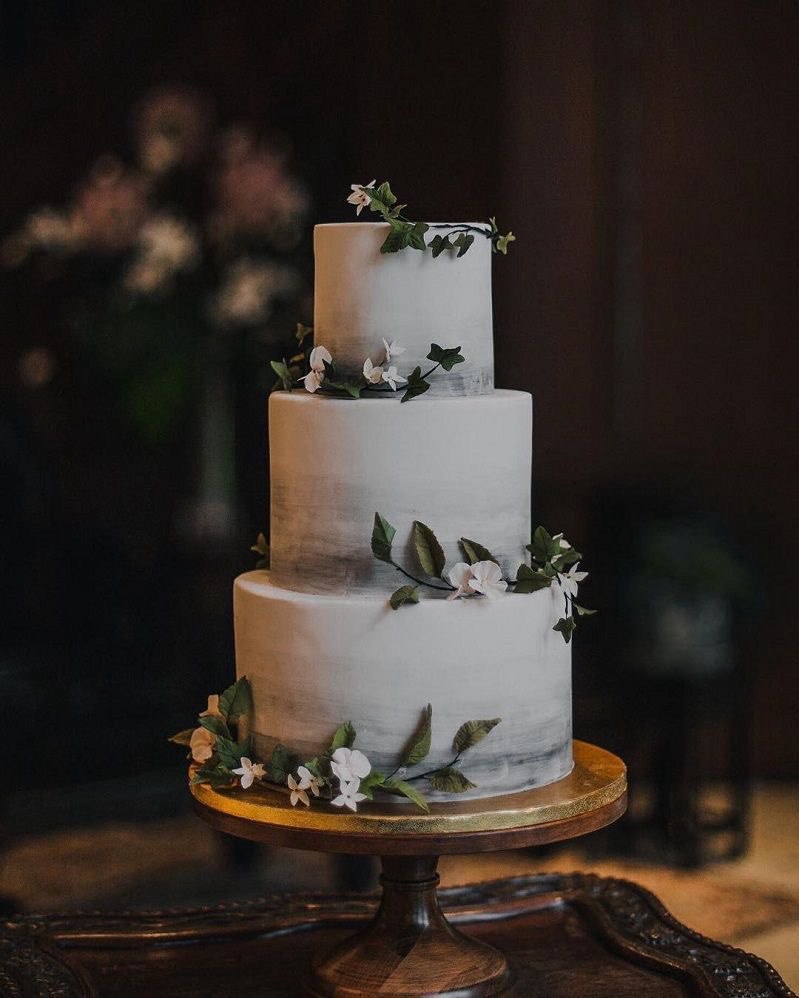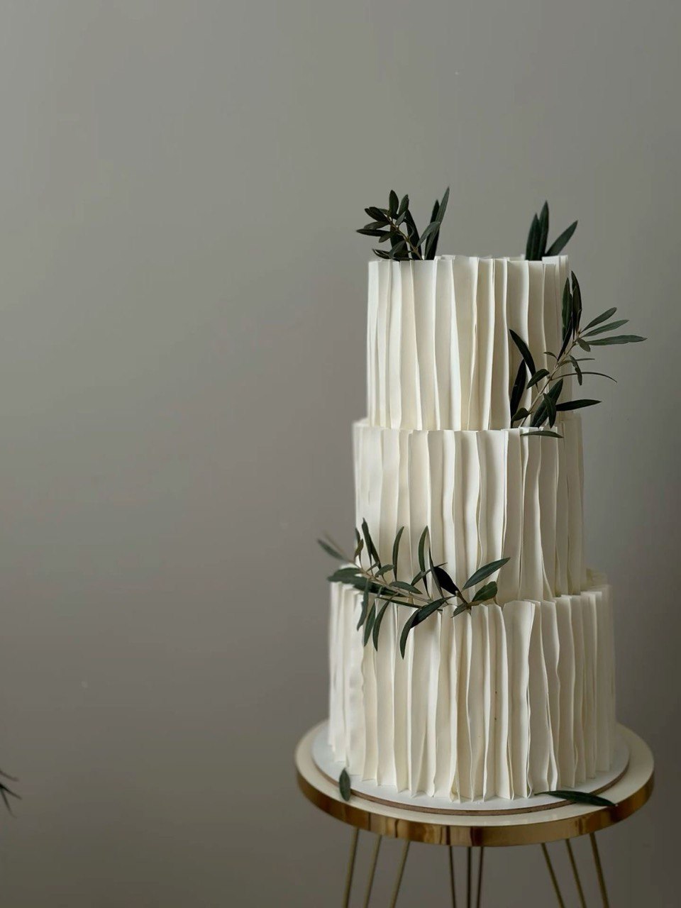 - كعكة الزفاف: لمسة من أغصان الزيتون وزهرات ياسمين طبيعية أو مصنوعة من السكر بتكمل القصة و ، بتتماشى مع الطابع العام للحفل.
