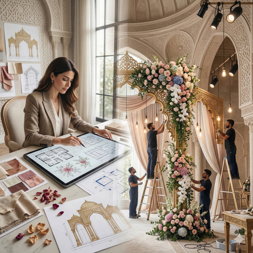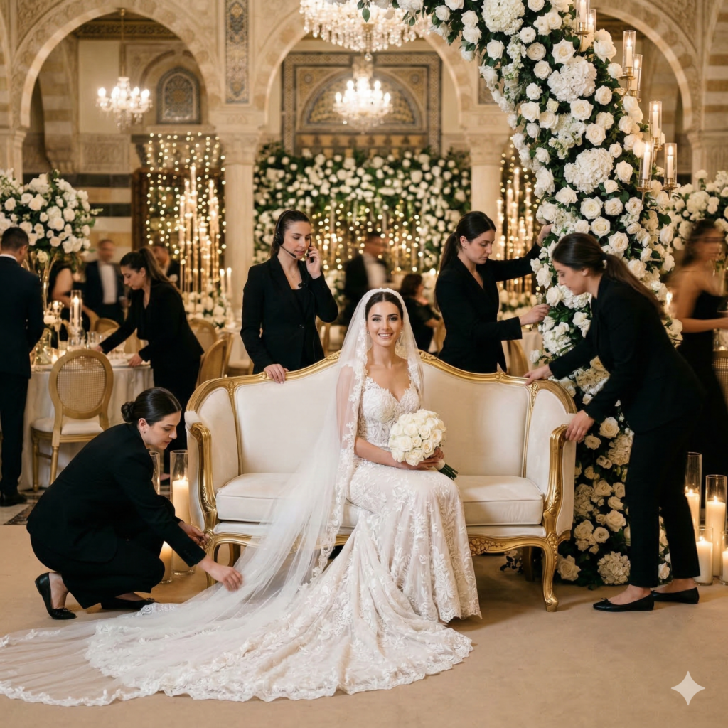 “باعتبارنا رواداً في تنظيم الحفلات بدمشق، نوفر لك تخطيطاً شاملاً يغطي اختيار المكان، إدارة الموردين، والميزانية. نوظف خبرتنا الطويلة وشبكة علاقاتنا لنصنع لك تجربة زفاف استثنائية تجعلنا خيارك الأول كأفضل منسقي أعراس في سوريا.”