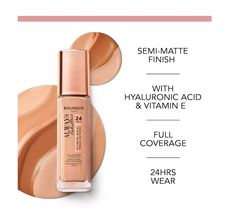 كريم الأساس Bourjois Always Fabulous يمنحك تغطية كاملة تدوم حتى 24 ساعة ولمسة نهائية مخملية.