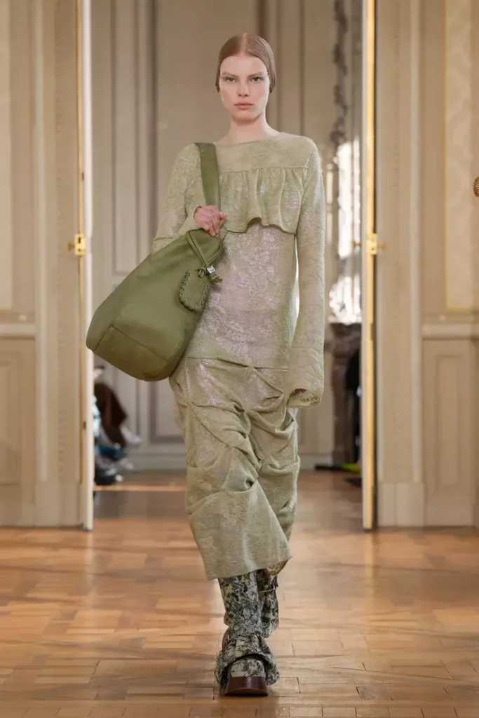 في خريف 2026، تبتعد Ganni قليلاً عن الرومانسية المفرطة، وتتجه نحو أسلوب أكثر حدة وعملية. المجموعة مستوحاة من فتاة المدينة التي تتنقل بدراجتها الهوائية بين العمل، الجامعة، ومواعيد القهوة مع الصديقات. الشعار هو: “ارتدي ما يجعلكِ تشعرين بالقوة”.