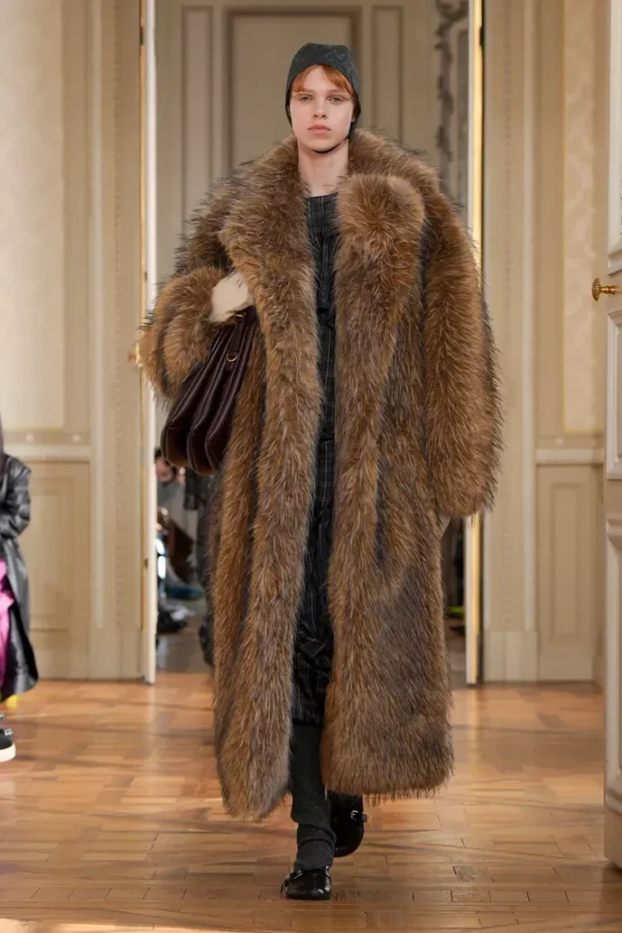 - المعاطف “المعدنية” (Liquid Metal Puffers): وداعاً للجاكيت الأسود الممل. هذا الموسم، المعاطف المنتفخة تأتي بألوان الكروم، الفضي، والأزرق الجليدي اللامع. إنها قطعة واحدة كفيلة بتحويل “لوك” بسيط إلى إطلالة فضائية.