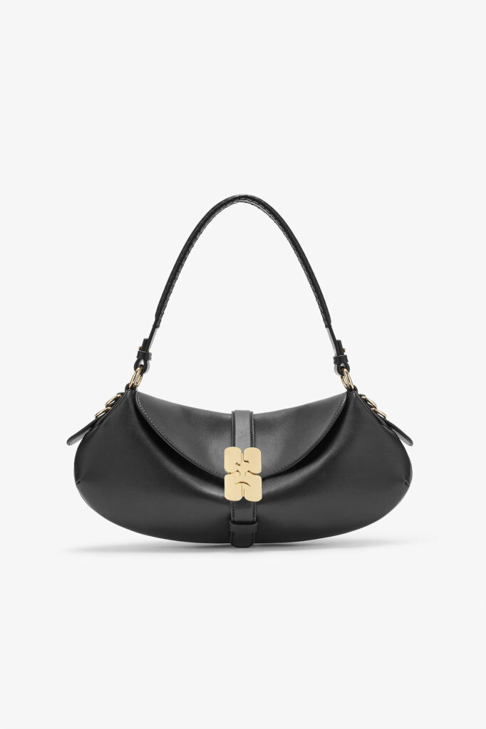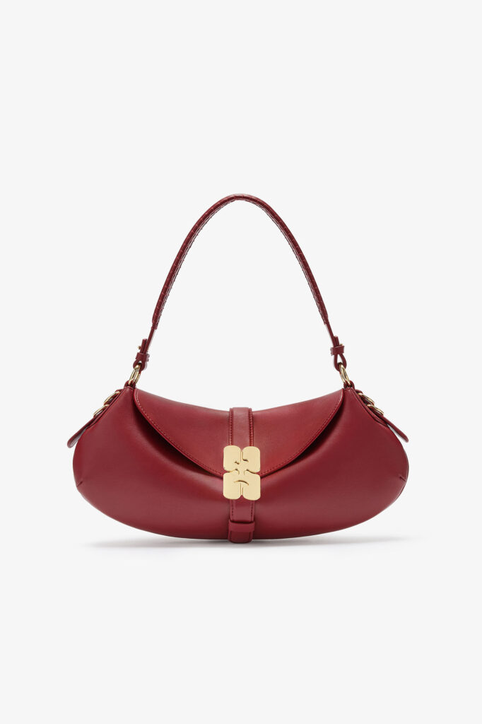 2. حقيبة الكروس الفوضوية (The Slouchy Crossbody): بينما تتجه الموضة للحقائب الصغيرة، تسبح Ganni عكس التيار بحقائب كبيرة ومرنة (Soft Leather) تلتف حول الجسم. عملية، مريحة، وتبدو أفضل كلما امتلأت بالأغراض.