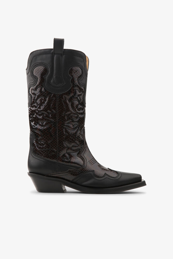1. بوت “الكاوبوي” الميتاليك (The Metallic Western Boot): إنه الحذاء الذي وضع Ganni على الخريطة، لكنه يعود في 2026 بنسخة مستقبلية. تخلي عن الجلد البني التقليدي، ورحبي باللون الفضي والكروم اللامع. إنه القطعة المثالية لكسر جمود المعاطف الشتوية السوداء.