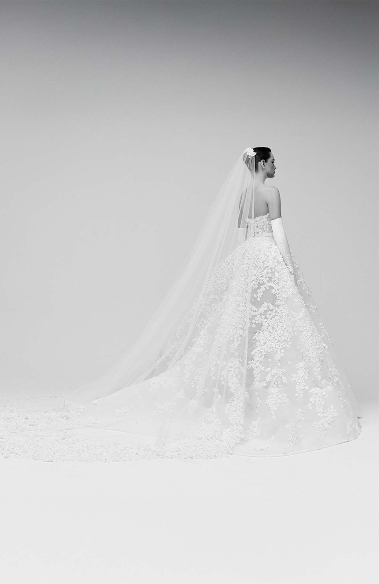 بكل إشراقها وتألقها، تُجسّد فساتين الدانتيل عالمًا شاعريًا وراقيًا، مُحاكيةً نعومة البتلات وبريق الكريستال. تُغلّف هذه الفساتين منحنيات الجسم بينما تتفتح التطريزات الزهرية وتنتشر على طول قماش التول الحريري. تتألق خطوط فستانٍ ضيقٍ انسيابية تحت تنورةٍ خارجية – مُلتحمةً معًا لتُعبّر عن أقصى درجات الجاذبية. ولإكمال الإطلالة، تُزيّن قفازاتٌ شفافة طويلة الذراعين بلمسةٍ من السحر.